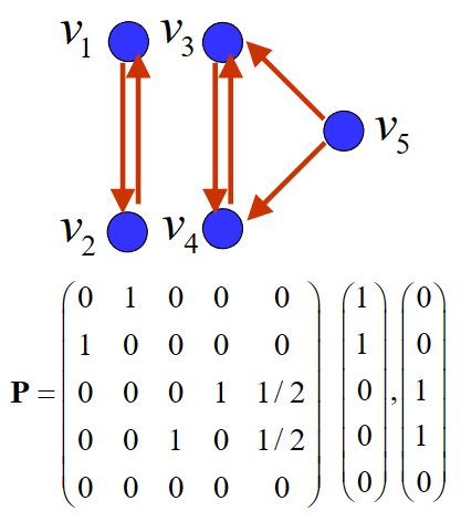 - 令 \(p_{ij} = \begin{cases}\frac{1}{q_j}\space,若有链接自 v_j 链向 v_i\\\space 0\space\space,其他\end{cases}\)