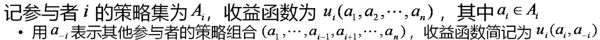 - 收益(Payoff):参与者在某一策略组合下的收益- 费用(Cost):参与者在某一策略组合下需付出的代价