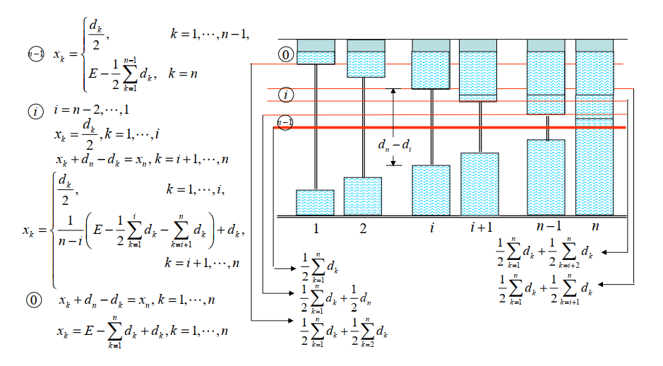 - 对任一满足CG性质的解,将各组容器断开,向每组容器中注入相应的水量