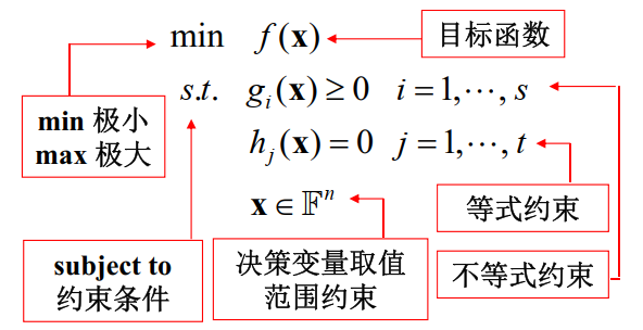 - 若干个变量在满足一些等式或不等式限制条件下,使目标函数取得最大值或最小值