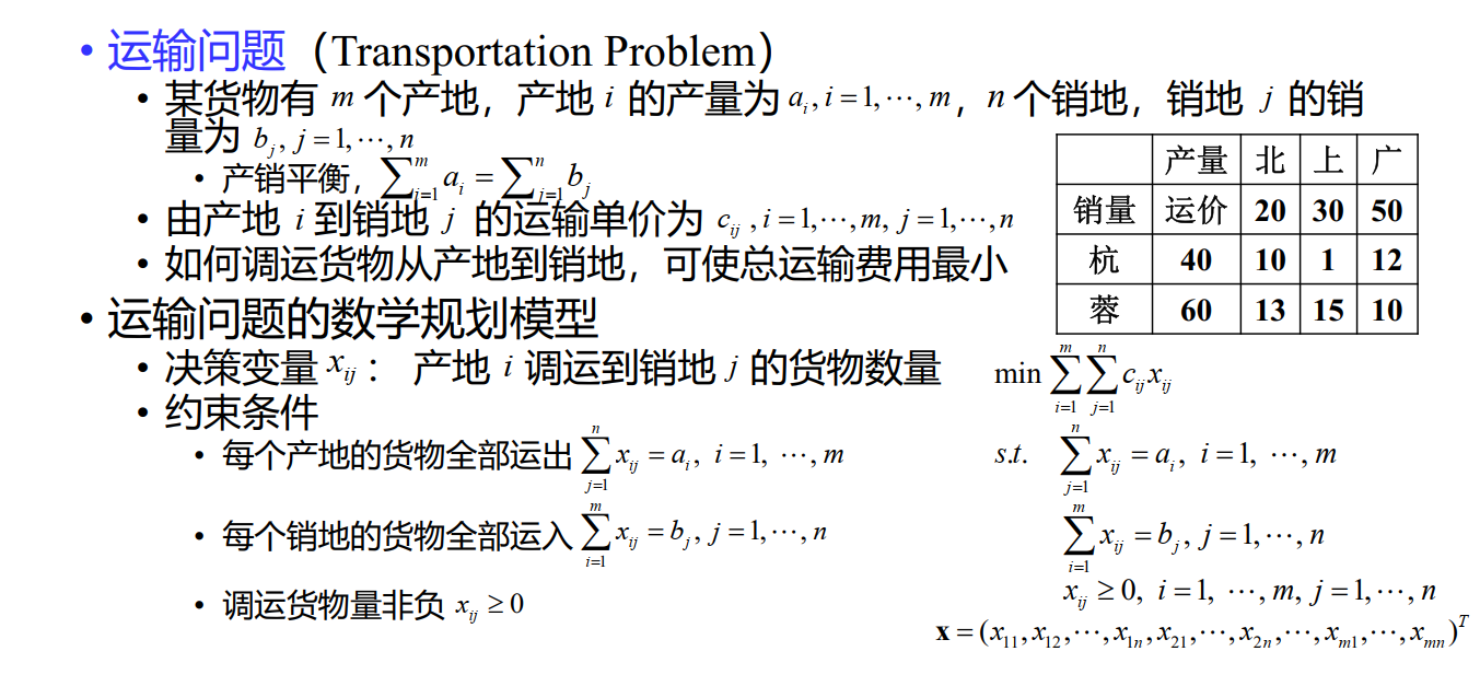 - 目标函数为线性函数,约束条件为线性等式或不等式