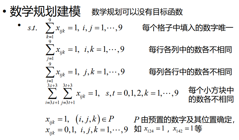 - 要素完整、变量指标运用准确。逻辑关系、集合运算等一般不在数学规划中出现