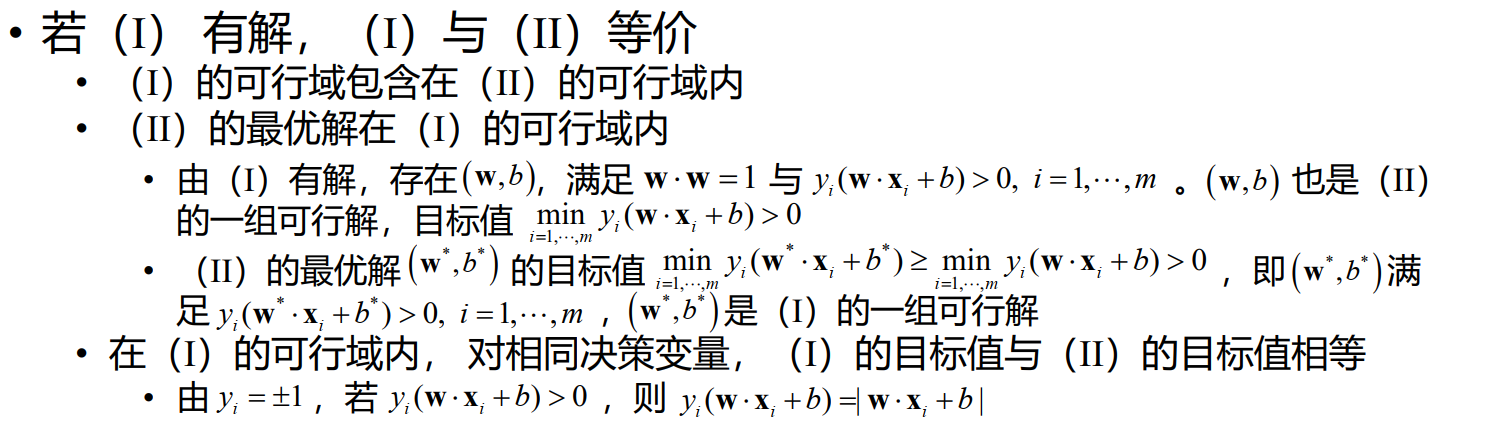 - 若 \(\pmb{w}⋅\pmb{w}=1\),则距离为 \(|\pmb{w}⋅\pmb{x}+b|\)。