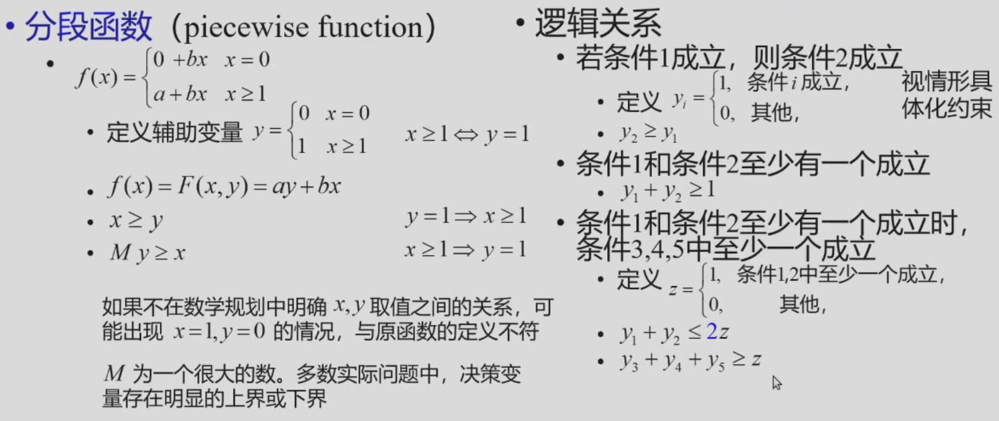 - 复杂目标函数和约束条件的简化, 0-1变量的灵活运用