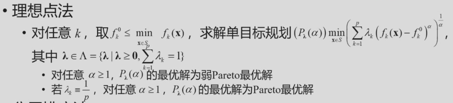- 不存在 \(\pmb{x}\in S\) ,使得所有 \(f_i(\pmb{x})<f_i(\pmb{x}^∗),i=1,2,⋯,p\) (非严格不等号)