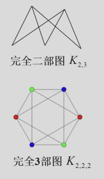- \(X\) 中所有顶点与 \(Y\) 中所有顶点都有边相连的二部图称为完全二部图