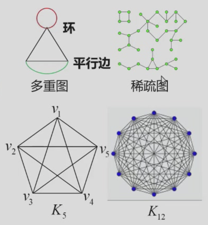 - 边数接近上界的称为稠密图(Dense Graph),边数远离上界的称为稀疏图(Sparse Graph)