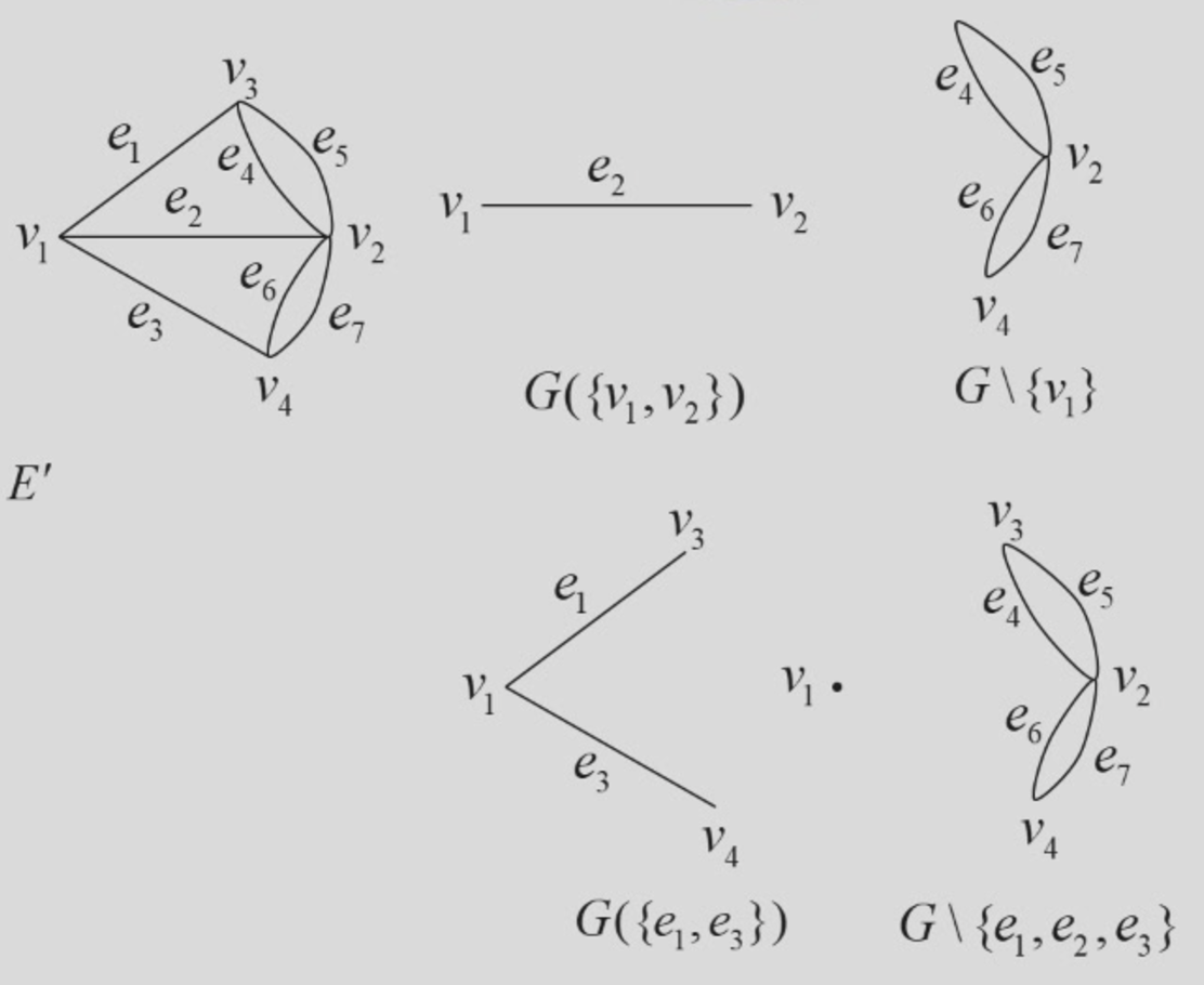 - 导出子图:\(G(V'),G\backslash V',G(E'),G\backslash E'\)