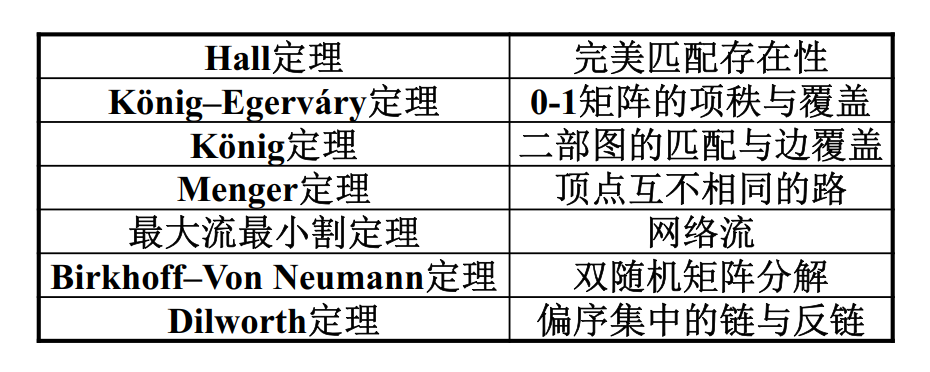 设 \(G=(X\bigcup Y,E)\) 为二部图,则存在匹配 \(M\),使得 \(X\) 中的任一个顶点均与 \(M\) 中的某条边关联的充要条件是 \(|S|\leq|N_G(S)|,\forall S\subseteq X\),这里 \(N_G(S)\) 为 \(G\) 中所有与 \(S\) 相邻的顶点集