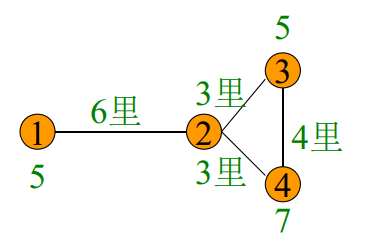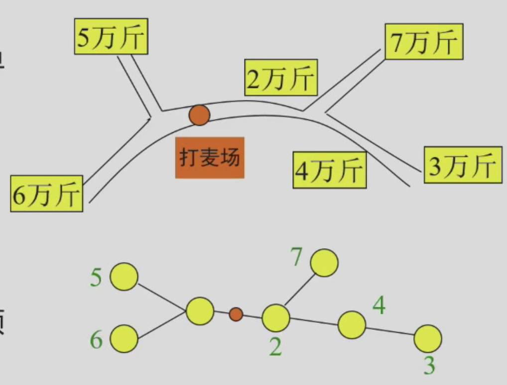 - 顶点的权为麦田的产量,边的权为道路的长度
