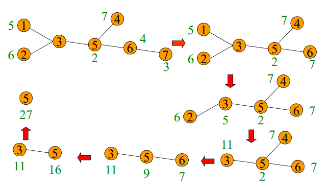 - 无圈图必有叶,删去一个叶子顶点后仍为无圈图