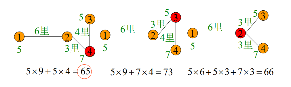 - 最简单的情况:如果只有两站,应在产量多的麦田建站