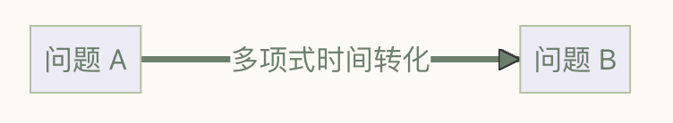 如果我们能在多项式时间的复杂度内,将问题 A 转化为问题 B,则称问题 A 可以多项式时间归约为 B,记为 \(A\leq_p B\),表示 A 不会比 B 难。