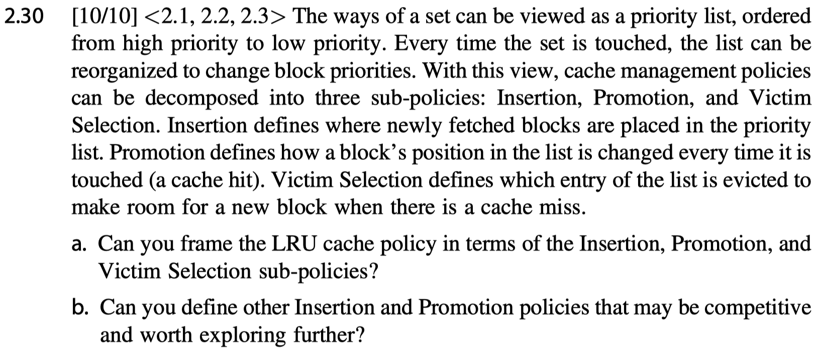 (b)将新拿到的块放到队列的倒数第二位,当块被再次访问时放到优先队列的头部,当块被替换时会将优先队列的尾部的块替换掉