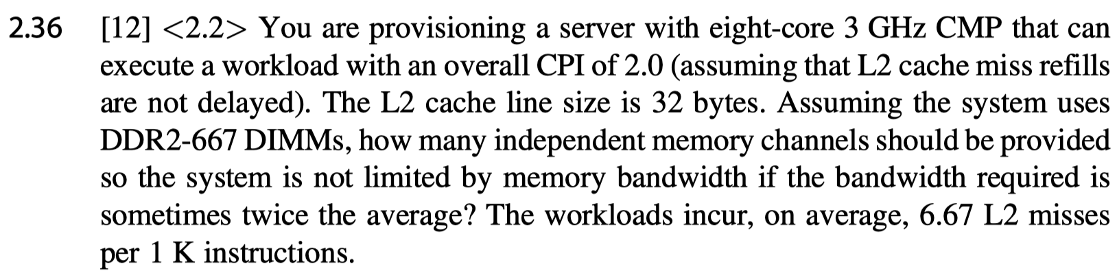 \text{Instructions per Second} &= 8\text{ cores}\times 3\text{ GHz}/2.0\text{ CPI}=1.2\times 10^{10}\\