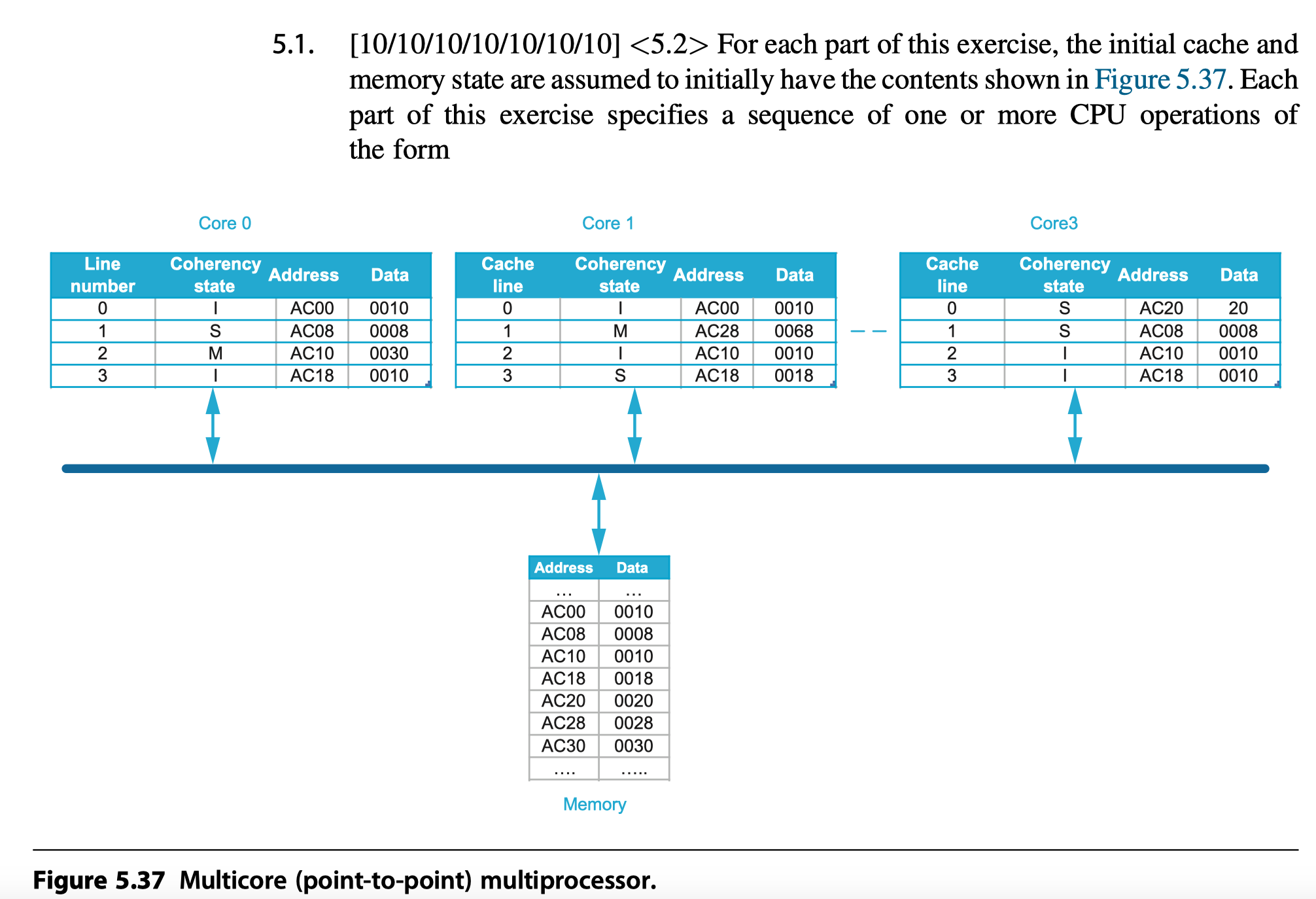 (c)第一条指令是满足 C3 的缓存,第二条指令是读命中,第三条指令是满足内存的,所以实现 1 需要 140 个周期,实现 2 需要 230 个周期