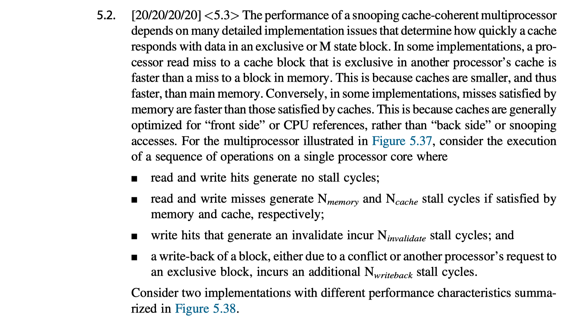 (d)第一条指令是满足内存的,第二条指令是满足 C0 和 C3 的(带 Write-Back),第三条指令是满足内存的,所以实现 1 需要 250 个周期,实现 2 需要 340 个周期