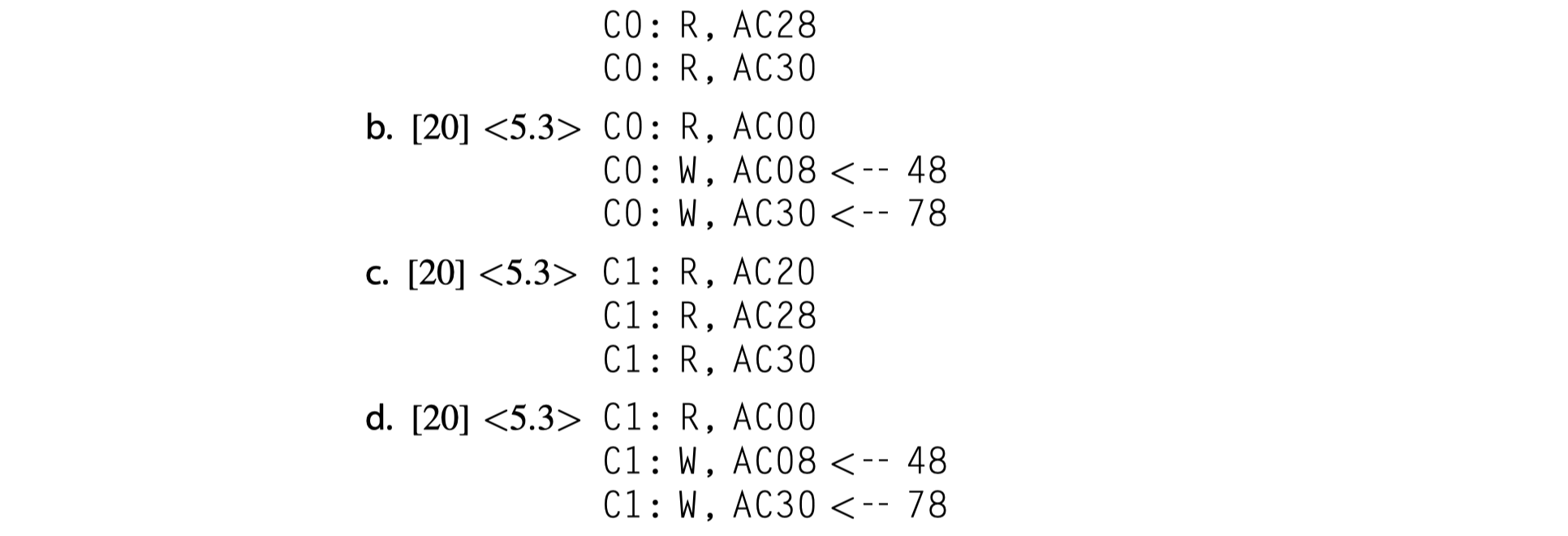 - 从 M4 到 C3 的写响应信息(100 \(\rightarrow\) 101 \(\rightarrow\) 111 \(\rightarrow\) 011)