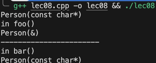 这是因为我们在 p1 的构造中直接传的是字符串,这并没有调用拷贝函数,但是在 return p 当中就调用拷贝函数了,而在 bar 函数中 Person(s) 会直接在 p2 的内存地址上构造,无需中间临时对象,因此不会触发拷贝构造函数