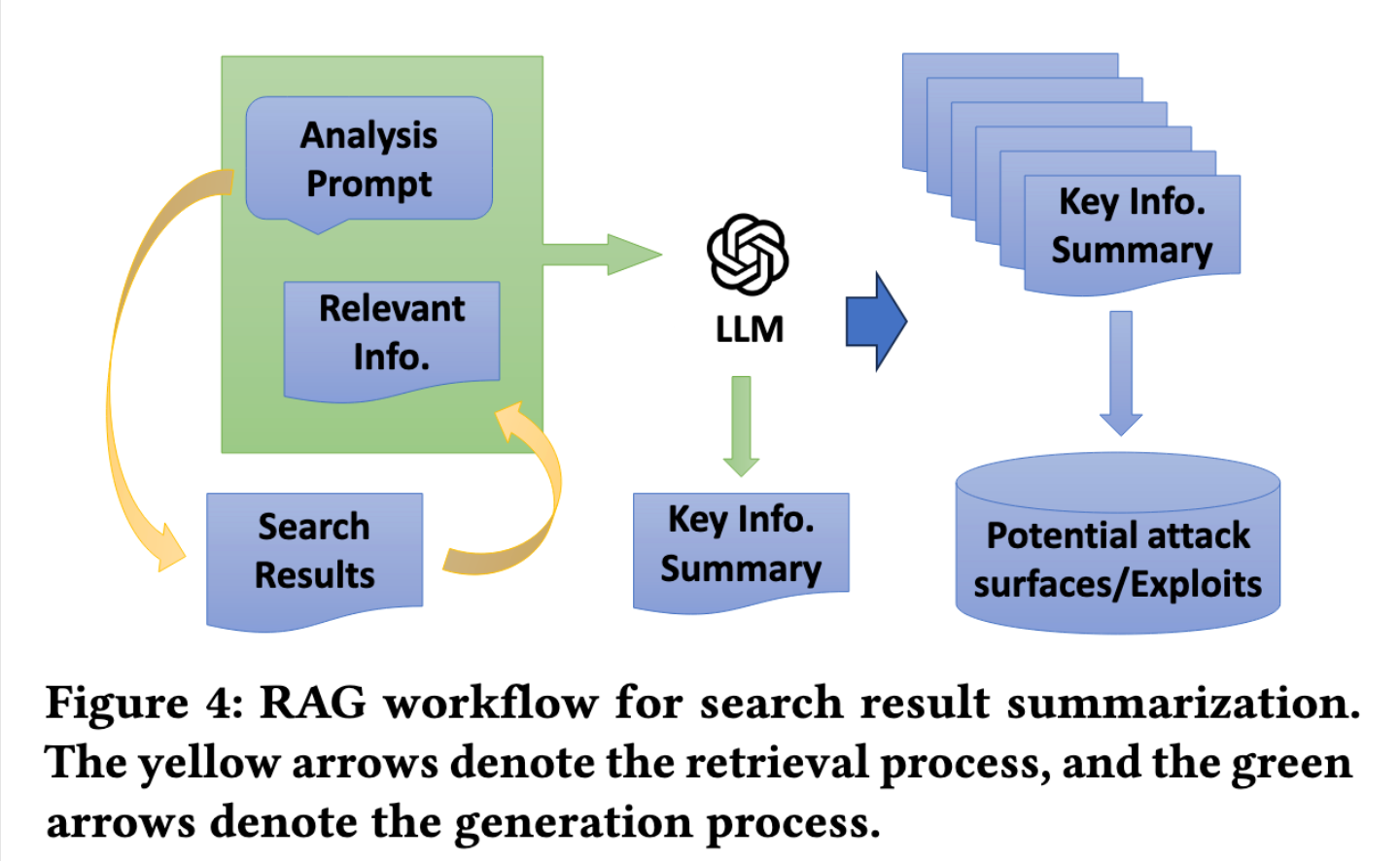 - 在线搜索模块是可定制和可扩展的。第一轮中使用谷歌和漏洞数据库搜索来识别潜在的攻击面,要求提供有关漏洞的相关性和关键信息,例如 CVE 编号,以及其他可以导致更详细信息的关键字或 url,然后在第二轮中使用谷歌和代码库搜索来查找漏洞实现细节。