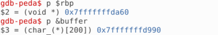 获得缓冲区的起始地址和 rbp 地址: