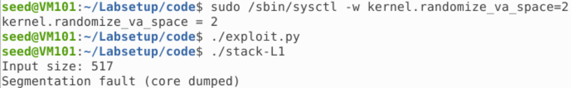 我们开启地址随机化,重新进行任务 3 的攻击: