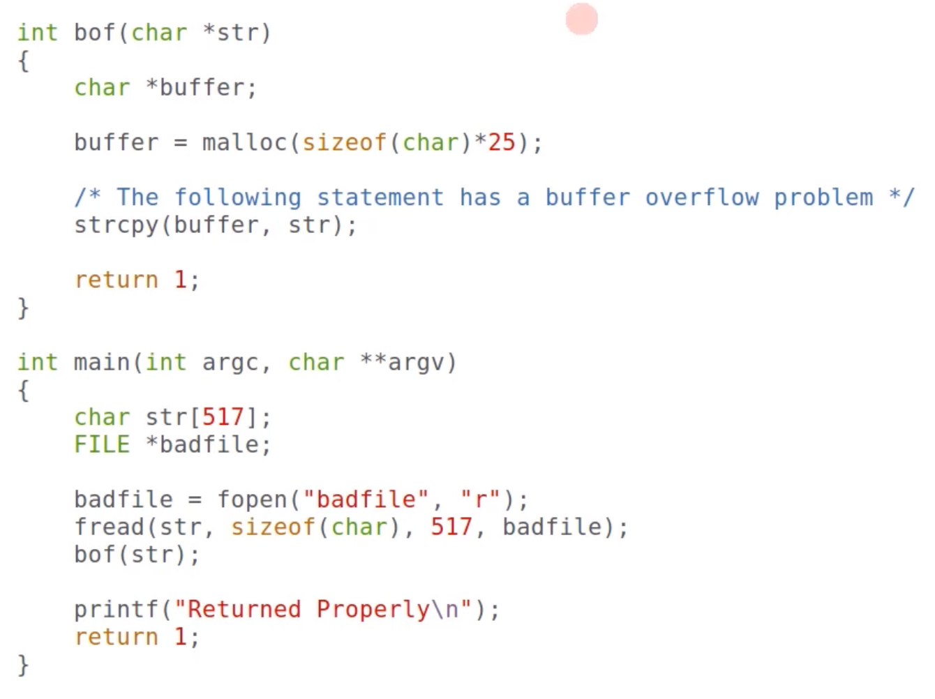 在之前我们所提到的都是在栈上的 Buffer Overflow 攻击,但是实际上,Buffer Overflow 攻击也可以发生在堆上,如下面的代码,我们利用 malloc 来构造我们的 buffer: